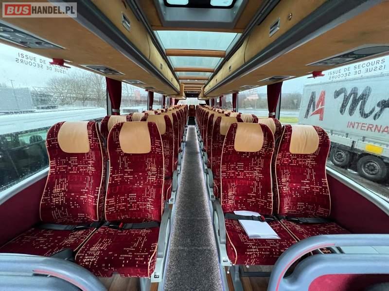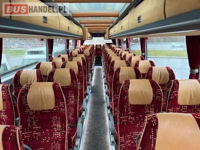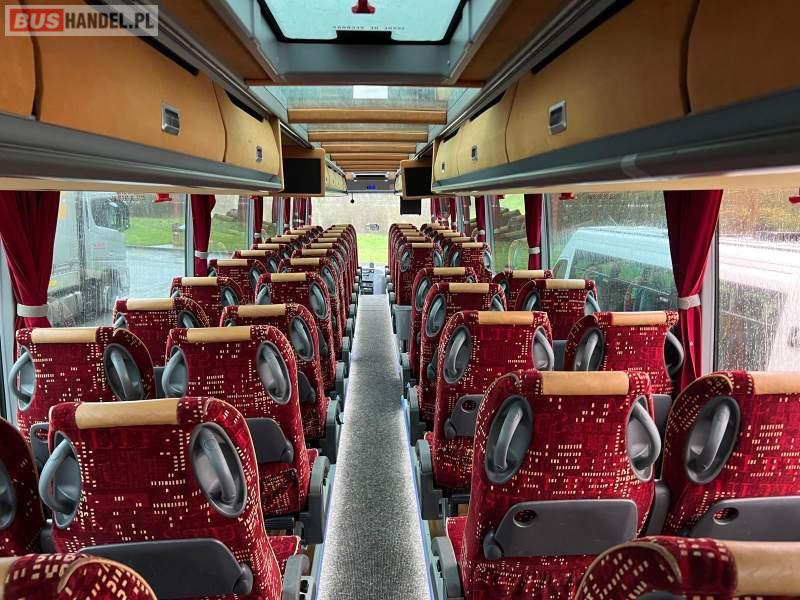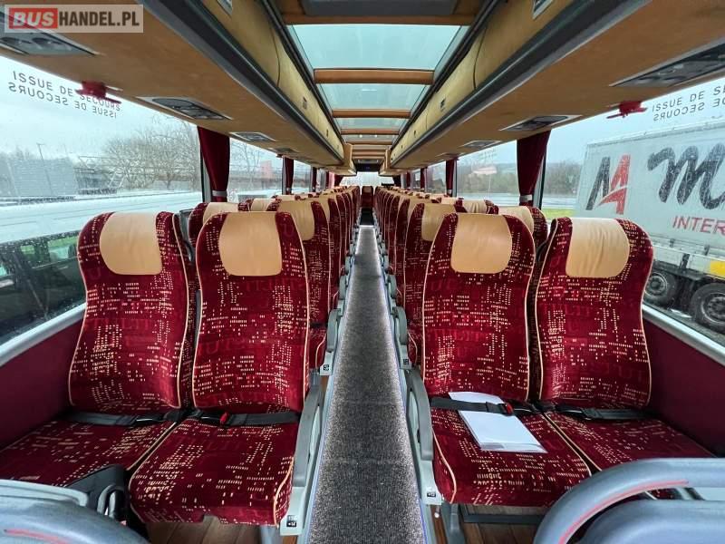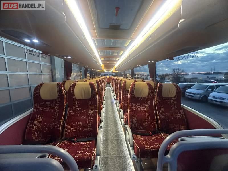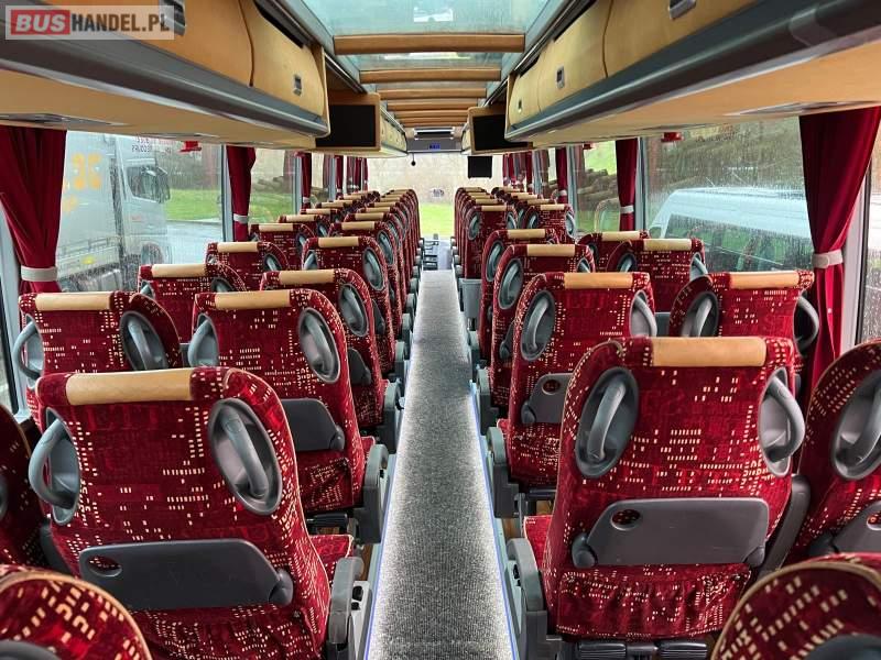 Wyposażenie: video, WC, lodówka, oświetlenie indywidualne, ABS, ASR, tempomat, retarder, CD, podnóżki, mikrofon, klimatyzacja, radio, podwójne szyby boczne, aluminiowe felgi, fotele odchylane i rozsuwane, DVD, ogrzewanie stacjonarne, ESP