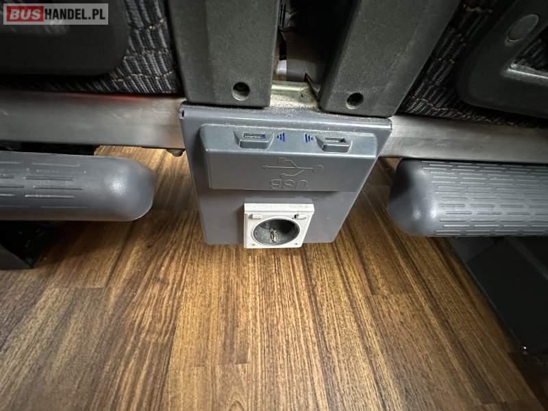 Wyposażenie: video, WC, lodówka, oświetlenie indywidualne, ABS, ASR, tempomat, retarder, CD, mikrofon, klimatyzacja, radio, podwójne szyby boczne, fotele odchylane i rozsuwane, DVD, ogrzewanie stacjonarne, ESP