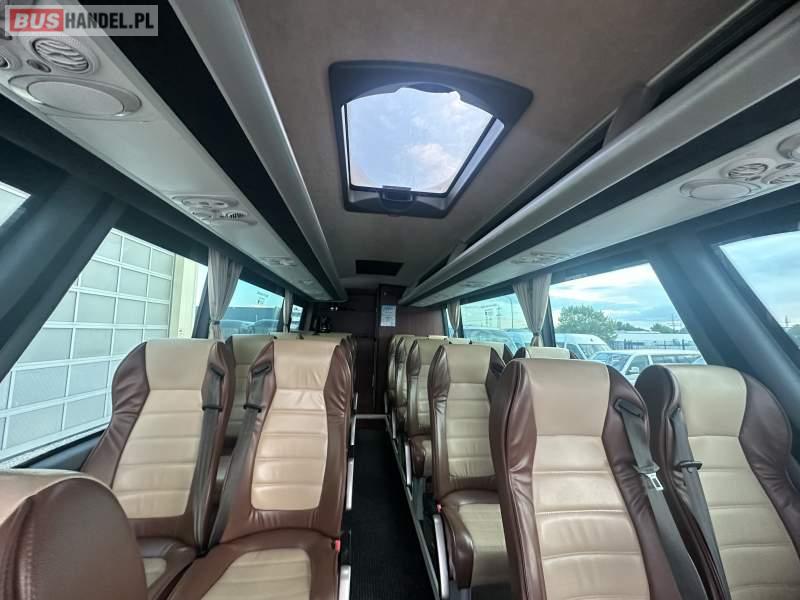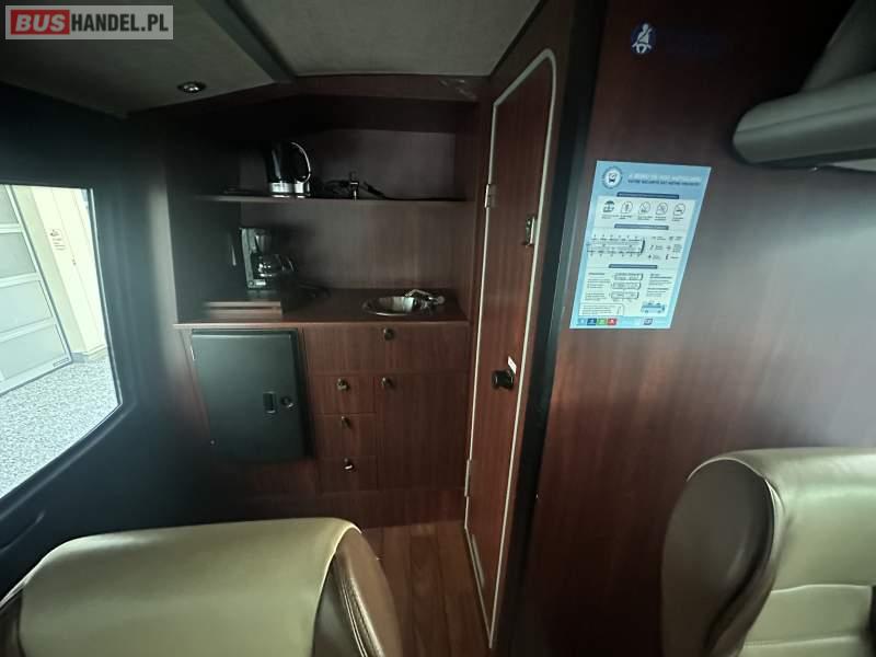 Wyposażenie: klimatyzacja, video, WC, lodówka, caffebar, podnóżki, siateczki, ABS, ASR, tempomat, retarder, nawigacja, CD, mikrofon, radio, fotele odchylane i rozsuwane, kuchenka mikrofalowa, wyświetlacz matrix, centralny zamek, podwójne szyby boczne, wspomaganie kierownicy, ogrzewanie stacjonarne, DVD, ESP